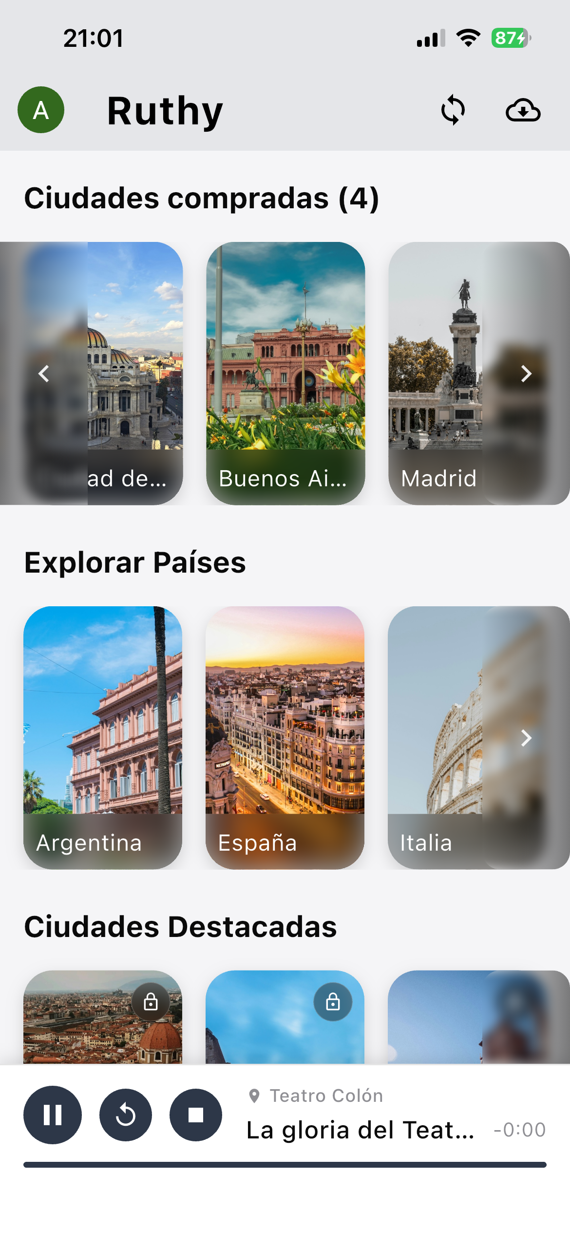 RUTHY es una aplicación móvil minimalista de turismo histórico desarrollada por AUDORA TECH SAS en Argentina. Ofrece audioguías geolocalizadas que se activan automáticamente cuando el usuario se acerca a puntos de interés, transformando la exploración urbana en una experiencia educativa y envolvente.